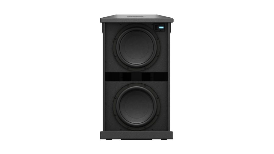 Two high-excursion drivers, each measuring 10 inches, are built into a compact enclosure that is light and easy to transport