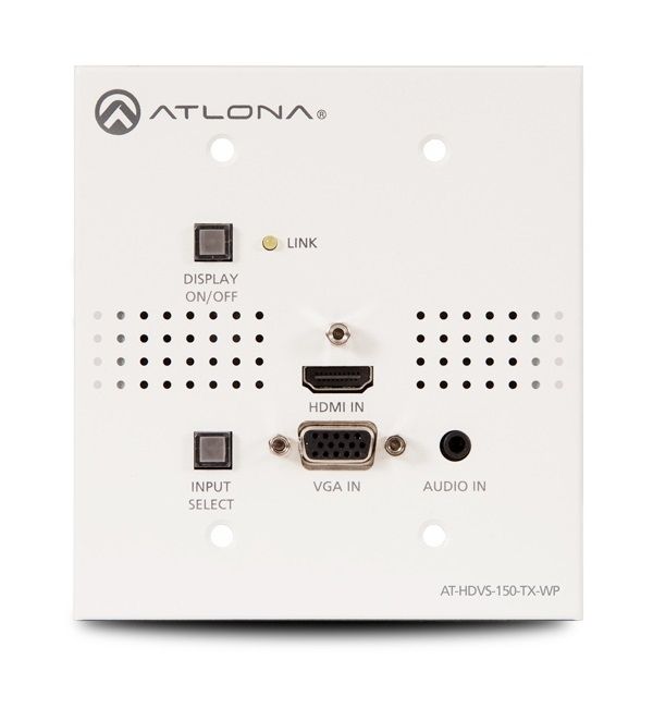 - Front panel input selection and display on/off control – optional AT-HDVS-TX-WP-NB faceplate available without control buttons