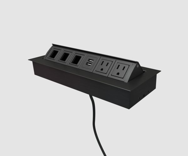 POWER DATA GROMMET WITH (2) POWER OUTLETS, (2) DATA OUTLETS, (1) VGA, 75" CORD, BLACK