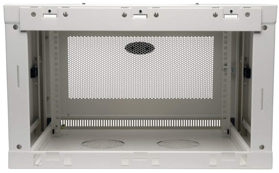 Wall-mount cabinet secures and organizes 6U of 19-inch rack equipment in network closets, classrooms and other locations with limited floor space. Houses network switches and patch panels up to 16.5 inches deep.