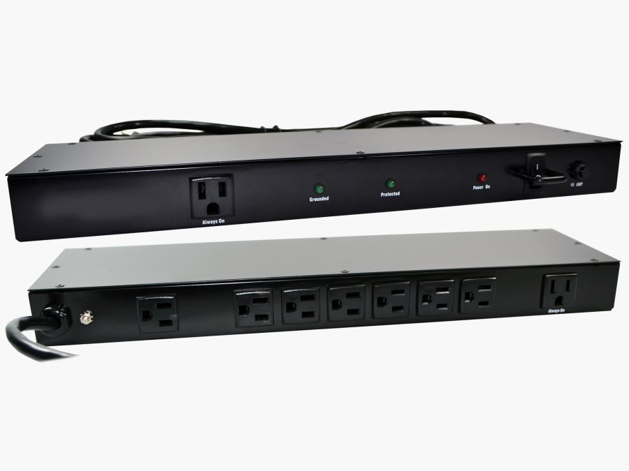 - Surge and noise suppression, resettable circuit breaker, surge indicator light and 15 Amps/125 Volts.