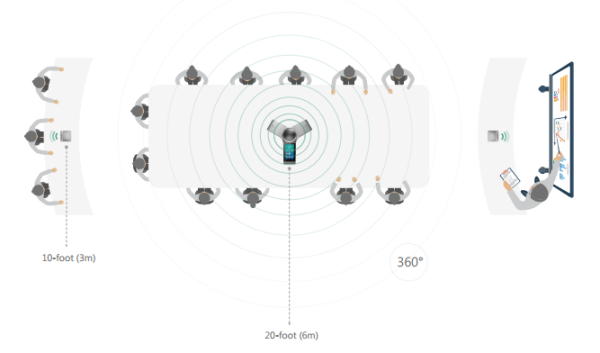 - 20-foot (6-meter) microphone pickup range
