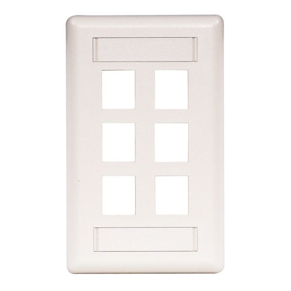 - Phone/Data/Multimedia Faceplate, Face Plate, Rear-Loading, 6-Port, Single-Gang, White
