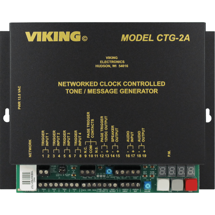 Viking CTG-2A Master Clock / Network Clock Controlled Tones or Messages Over a Paging System