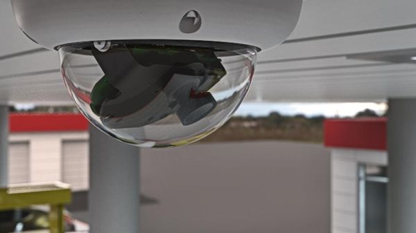 - Elegant dome camera with exchangeable lenses from telephoto to wide-angle lens