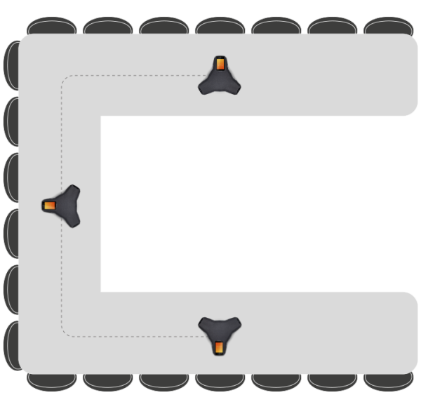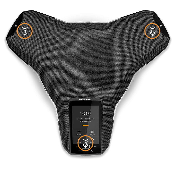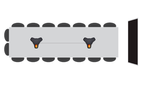 Medium – Large ScenariosWith the Konftel Smart Microphone, you can expand the pick-up range to handle larger conferences. Connect one or two expansion microphones, depending on the size of the room. The Konftel Smart Microphone has built-in cancellation of echo and background noise through OmniSound®. |