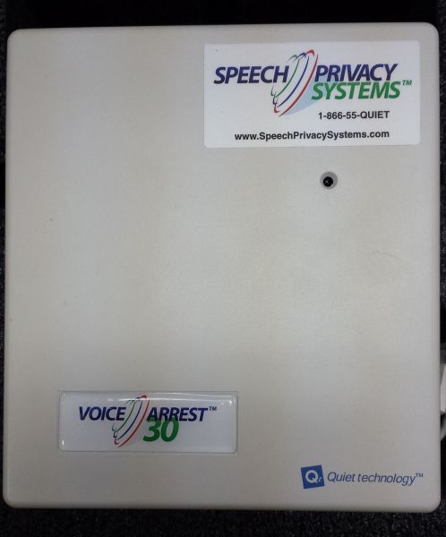 The VoiceArrest system is an enterprise-level office sound masking system, providing the most uniform and best-sounding privacy available. A "direct-field" system, the VoiceArrest sound masking system represents the latest generation in sound masking technology and has been providing exceptional privacy to clients like NASA, the USAF, and the Yale University Medical Center, as well as hundreds of small to mid-size businesses across North America. The VA-SE Single Emitter is the key to the effectiveness of this system. An ultra-wide-angle dispersion emitter broadcasting sound at 170 degrees means that unlike older systems, there are no "hot or cold" areas, instead, you get measurably the most uniform sound masking currently available. Because the system is a direct field system, it also doesn't have to compensate for the acoustic challenges inherent in placing sound equipment above the suspended ceiling. The VoiceArrest system sounds like the gentle "whoosh" of a good HVAC system. In other words, your mind will tune it out - along with the distractions that are common in most offices. The VA-30 Control Module also can provide paging and background music via the VoiceArrest Single Emitter.